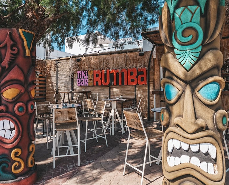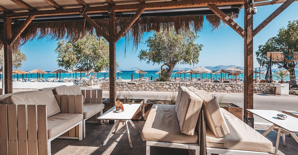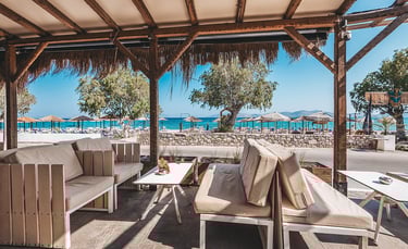 Rumba Tiki Bar & Yiamas Restaurant, a beachfront gem at Marmari beach, offers an all-day dining experience featuring top-tier cocktails and locally sourced cuisine.